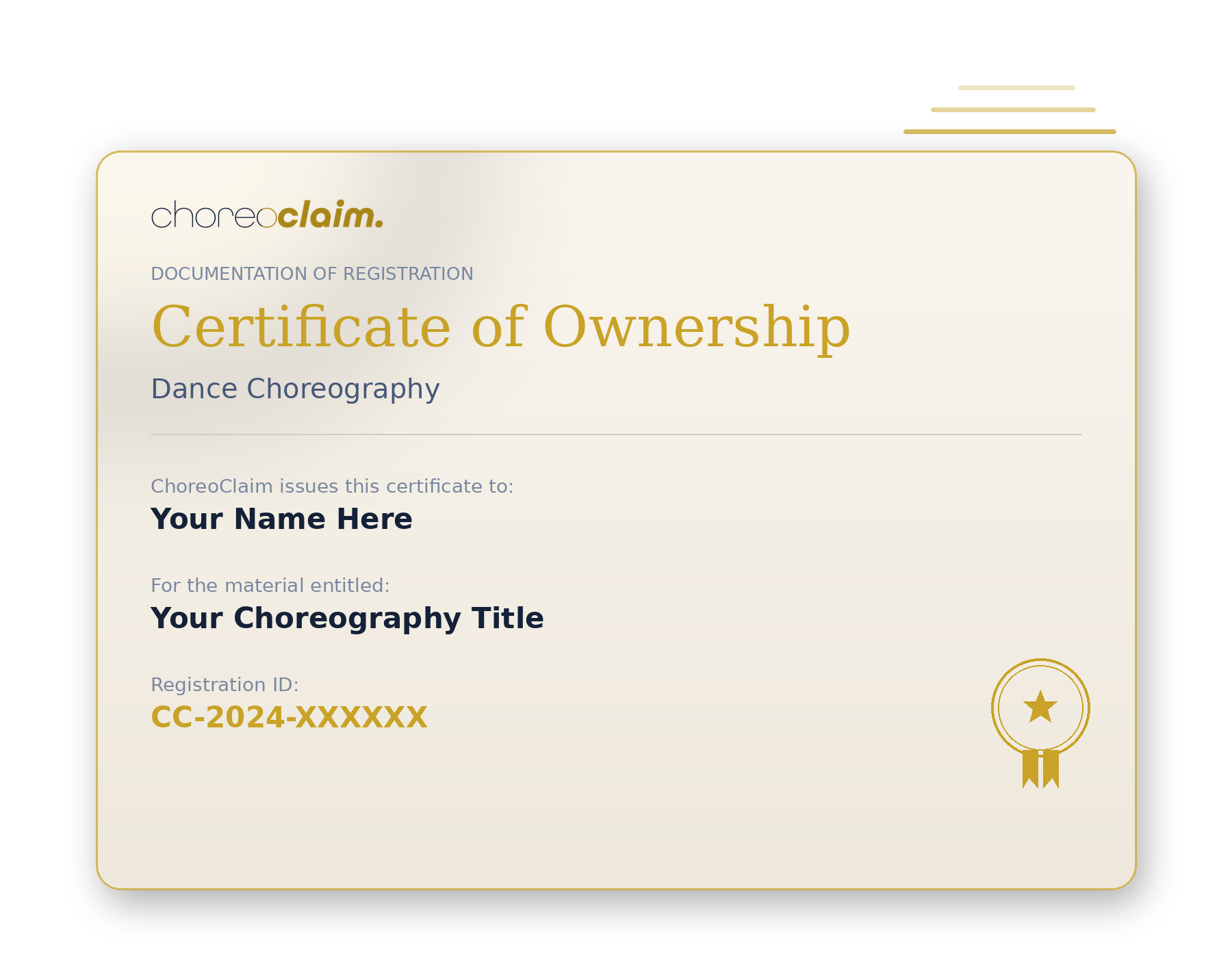 The fastest, easiest, and most affordable way to establish your choreography ownership. Get timestamped proof, unique content ID, and secure digital storage.
